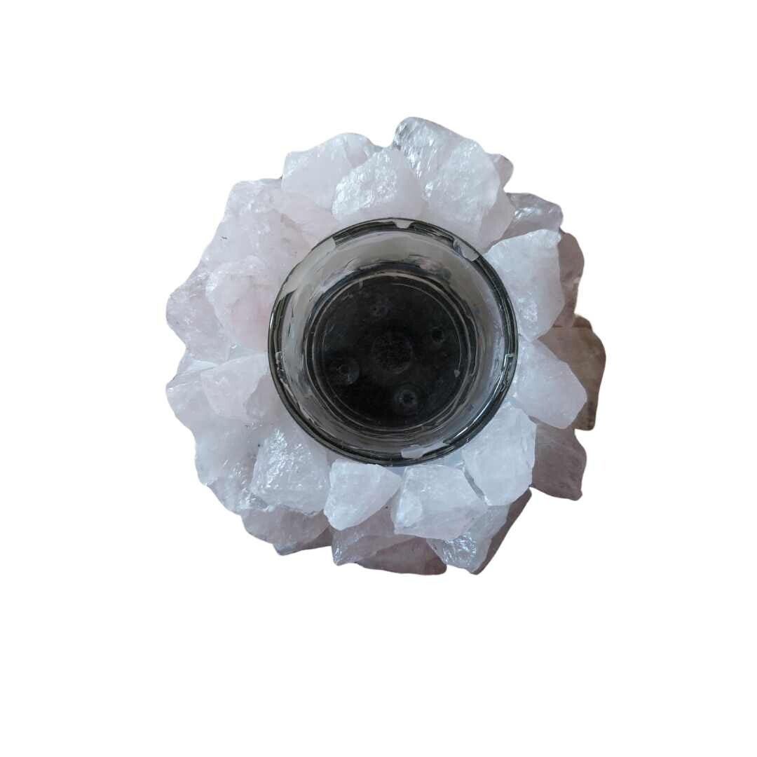 Rozenkwarts is een echte harten-steen. De vorm van deze waxinelichthouder doet mij denken aan een bloem die zich opent. Een echte hart-opener dus!